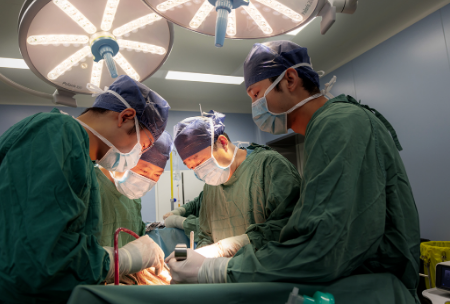 王學(xué)智主任在靳宏虎醫(yī)生、王鴻飛醫(yī)生的協(xié)助下,充分游離胃后壁至食管腹段,過(guò)程中結(jié)扎離斷胃后及胃左血管,依次將腫瘤與其他脂肪筋膜組織的連接予以離斷,切斷結(jié)扎腫瘤的供應(yīng)血管,一點(diǎn)點(diǎn)將腫瘤及累及的器官與正常組織剝離,一個(gè)25cm*18cm*15cm大小的腫瘤成功脫離體外……近4個(gè)小時(shí)的腹腔巨大腫瘤切除 胃部分切除 胰體尾聯(lián)合脾臟切除 部分橫結(jié)腸切除 腸吻合術(shù),成功按下了死神行進(jìn)的終止鍵。