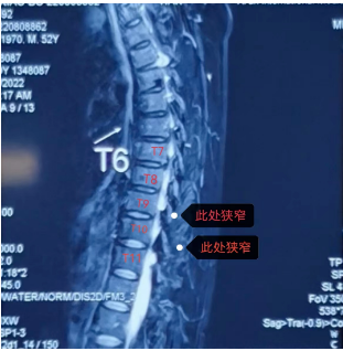 患者劉先生(化名)多年前就被確診為強(qiáng)直性脊柱炎,雖有間歇性治療,但胸椎、頸椎、腰椎等多節(jié)段都有椎管狹窄,尤其是胸9—10和10—11兩個(gè)節(jié)段,骨化的黃韌帶和脊髓的硬膜幾乎完全粘連在一起,脊髓壓迫嚴(yán)重。受此影響,劉先生兩條腿沉重、走路沒有力量,需要人攙扶著才能走,且大小便也控制得不好,才52歲的他,生活已完全不能自理。
