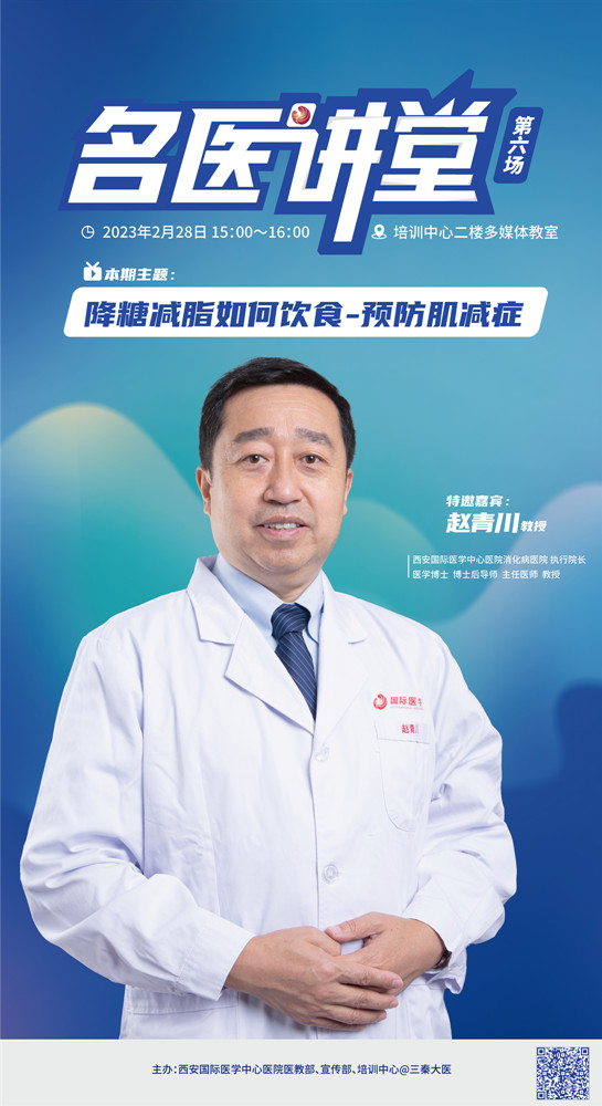 2月28日,消化病醫(yī)院執(zhí)行院長(zhǎng)趙青川教授做客《名醫(yī)講堂》第六期,以“降糖減脂和預(yù)防肌減癥”為主題,為各??漆t(yī)院、科室中青年醫(yī)師分享了自己在肌減癥疾病認(rèn)識(shí)及飲食調(diào)節(jié)方面的經(jīng)驗(yàn)。