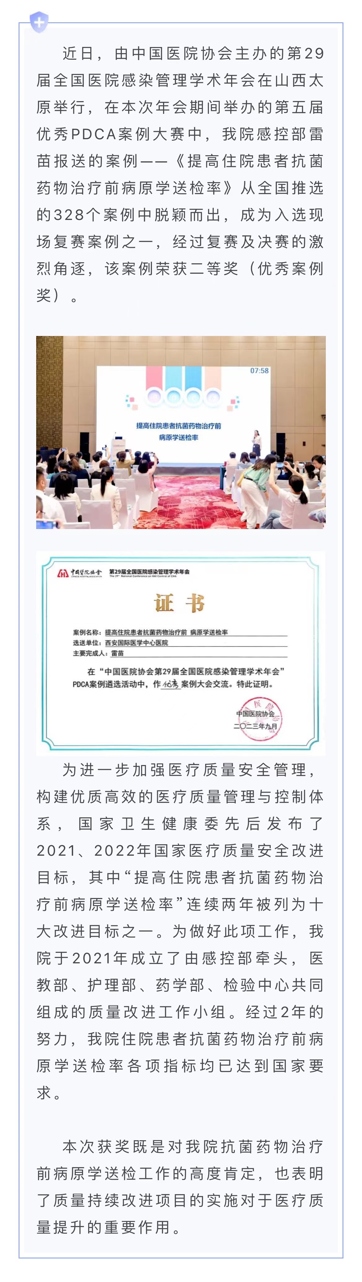 我院榮獲全國醫(yī)院感染管理學(xué)術(shù)年會(huì)第五屆PDCA案例大賽二等獎(jiǎng)