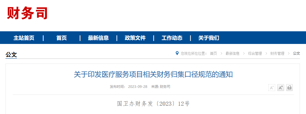 關(guān)于印發(fā)醫(yī)療服務(wù)項目相關(guān)財務(wù)歸集口徑規(guī)范的通知