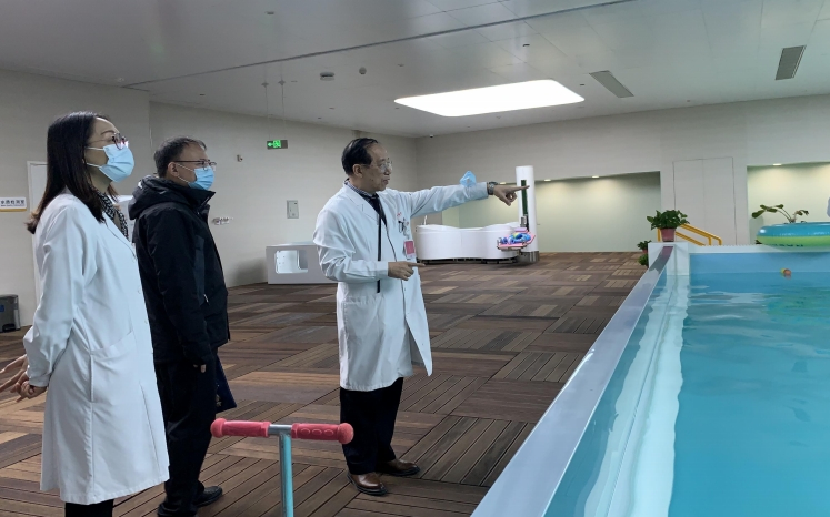 會后,牛部長一行參觀了醫(yī)院成人康復(fù)部的肌骨與臟器康復(fù)治療區(qū)、水療康復(fù)區(qū)、中藥熏蒸室。期間張正湘院長詳細介紹了我院康復(fù)部的優(yōu)勢科室、先進儀器、構(gòu)思設(shè)計及特色醫(yī)療服務(wù)。牛部長一行對我院工傷保險工作所做出的努力和取得的成績給予了高度評價,并對醫(yī)院先進的醫(yī)療設(shè)備、溫馨的就醫(yī)環(huán)境、人性化的醫(yī)療服務(wù)贊不絕口。并希望與醫(yī)院加強工傷醫(yī)療康復(fù)的合作意愿,為廣大工傷患者提供更優(yōu)質(zhì)的服務(wù)。