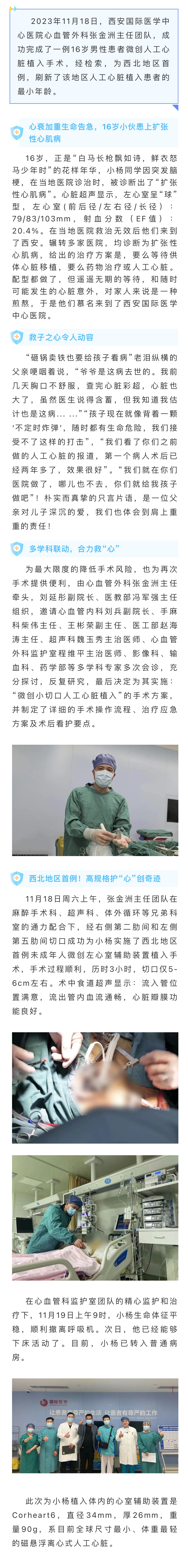 西北地區(qū)首例!西安國際醫(yī)學中心醫(yī)院為一名16歲小伙完成“人工心臟”微創(chuàng)植入術(shù)