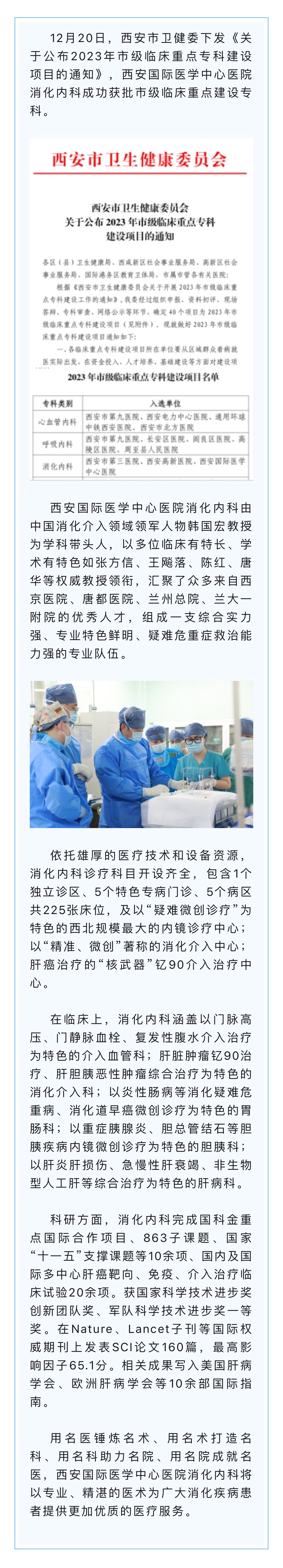 我院消化內(nèi)科成功獲批市級(jí)臨床重點(diǎn)建設(shè)專(zhuān)科