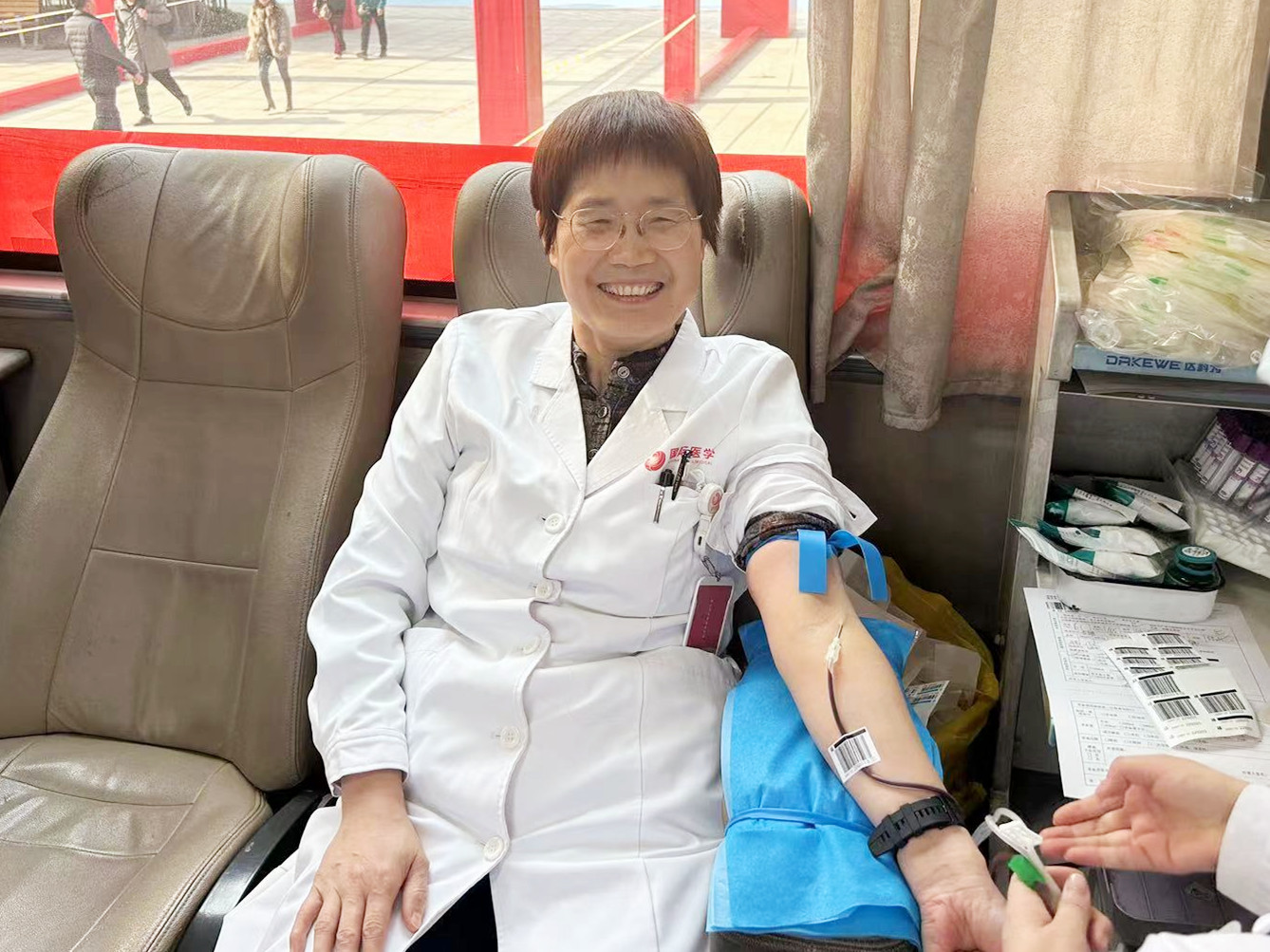 今年的獻(xiàn)血活動(dòng),連續(xù)15年獻(xiàn)血、個(gè)人獻(xiàn)血量超過(guò)6000毫升的腎臟內(nèi)科李占亭主任第一個(gè)來(lái)到了活動(dòng)現(xiàn)場(chǎng),完成登記、體檢。為生命接力,讓愛(ài)心傳遞,劉延彤副院長(zhǎng)、麻醉手術(shù)科王彬榮副主任、運(yùn)營(yíng)管理部柴春雨主任、門診部楊博主任、信息中心王暾主任、臨床實(shí)驗(yàn)中心于軍主任、醫(yī)教部劉鑫副主任、內(nèi)分泌科任麗君副主任紛紛參加獻(xiàn)血……