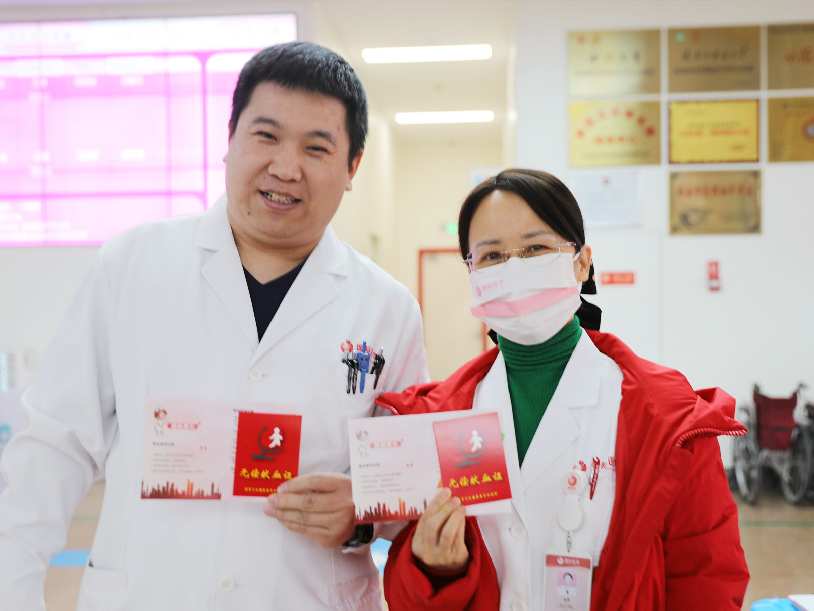 西安市中心血站現(xiàn)場(chǎng)為踴躍參與無(wú)償獻(xiàn)血活動(dòng)的醫(yī)務(wù)人員、志愿群眾發(fā)放無(wú)償獻(xiàn)血證,感謝他們?yōu)橥炀壬龀龅呢暙I(xiàn),呼吁更多人加入無(wú)償獻(xiàn)血者隊(duì)伍。