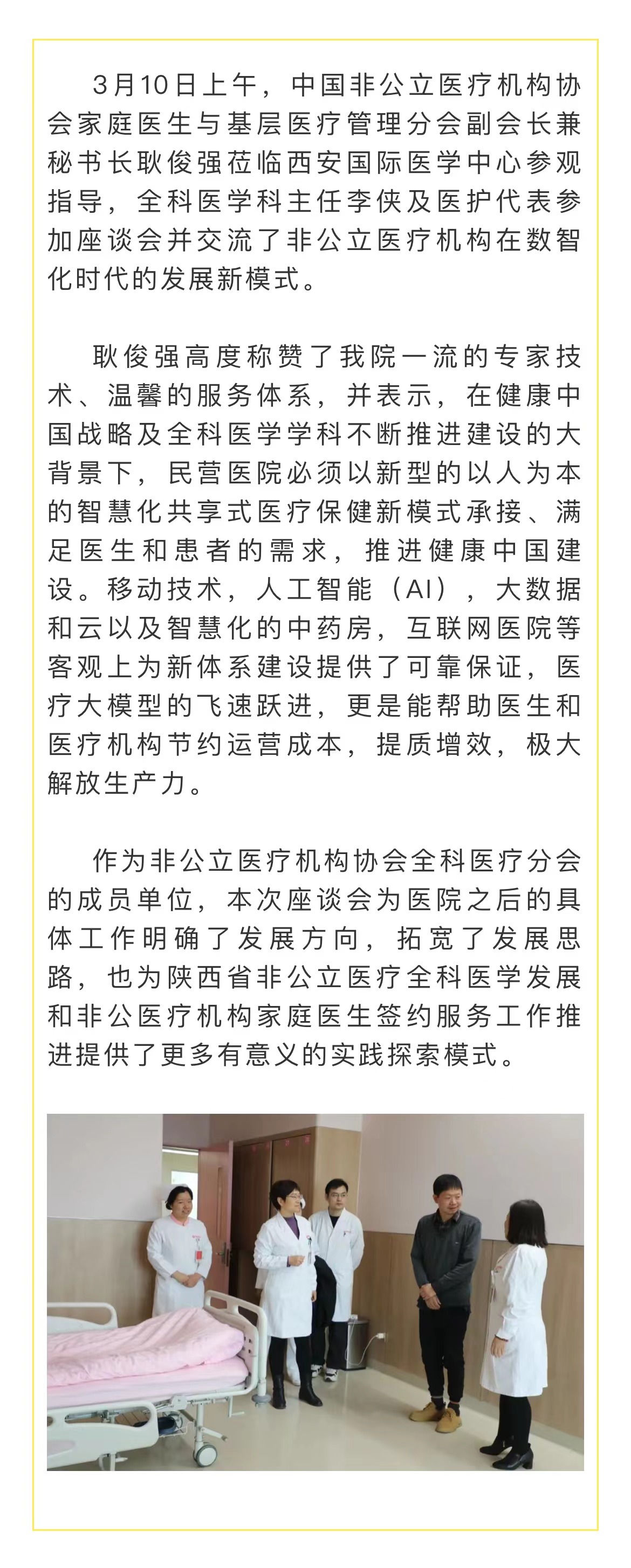 • 國內(nèi)首家高分通過JCI認證的醫(yī)院 西安國際醫(yī)學(xué)中心醫(yī)院為國內(nèi)首家高分通過JCI認證的醫(yī)院,該稱號由國際醫(yī)療機構(gòu)認證聯(lián)合委員會頒布。