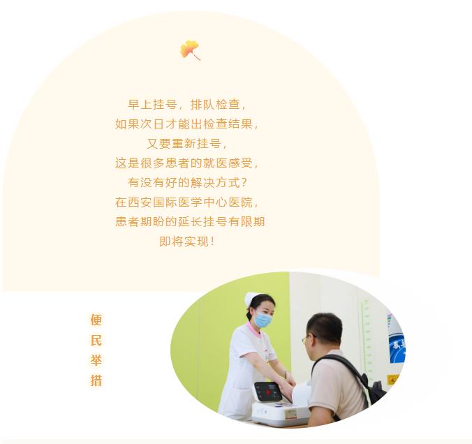 西安國際醫(yī)學中心醫(yī)院打破掛號診療當日有效的慣例,創(chuàng)新推出“一次掛號三天有效”的舉措,進一步優(yōu)化門診服務流程,降低患者就醫(yī)成本,改善患者就醫(yī)感受。自2023年8月7日起,患者掛號就診后,如果檢驗、CT等輔助檢查結果當天未出,三日內再次在同院區(qū)、同專業(yè)就診免收掛號費,醫(yī)生免費為患者解讀報告,提供治療建議。