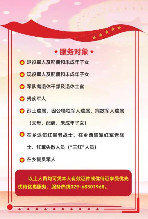 作為“西安市愛國擁軍單位”,西安國際醫(yī)學中心醫(yī)院于2022年6月21日成立了退役軍人服務(wù)中心,始終響應(yīng)國家針對軍人依法優(yōu)先的相關(guān)政策,推出“優(yōu)先、優(yōu)待、優(yōu)質(zhì)、優(yōu)惠”的“四優(yōu)”政策,對退役軍人等優(yōu)撫對象,提供便捷就醫(yī)。