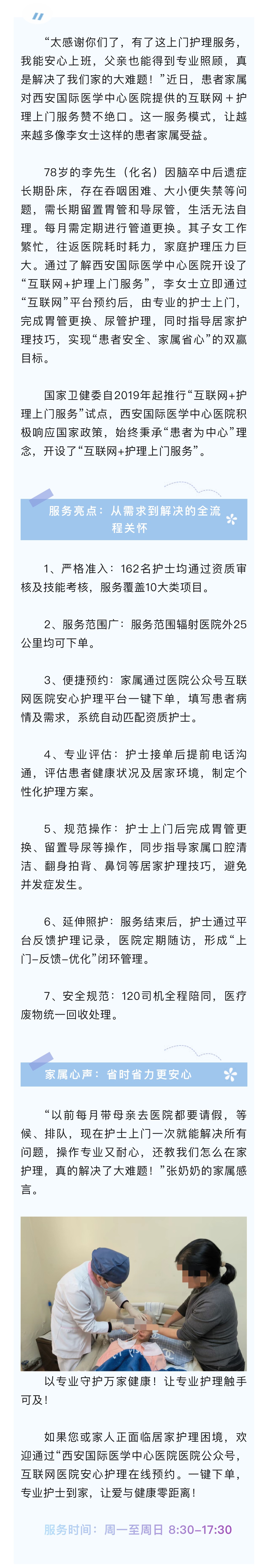 一鍵預(yù)約,專業(yè)到家——西安國(guó)際醫(yī)學(xué)中心醫(yī)院“互聯(lián)網(wǎng)+護(hù)理上門(mén)服務(wù)”為失能老人解憂,讓家屬安心工作