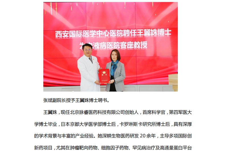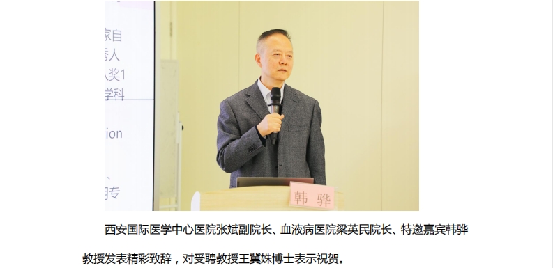 王冀姝博士受聘為西安國(guó)際醫(yī)學(xué)中心醫(yī)院血液病醫(yī)院客座教授