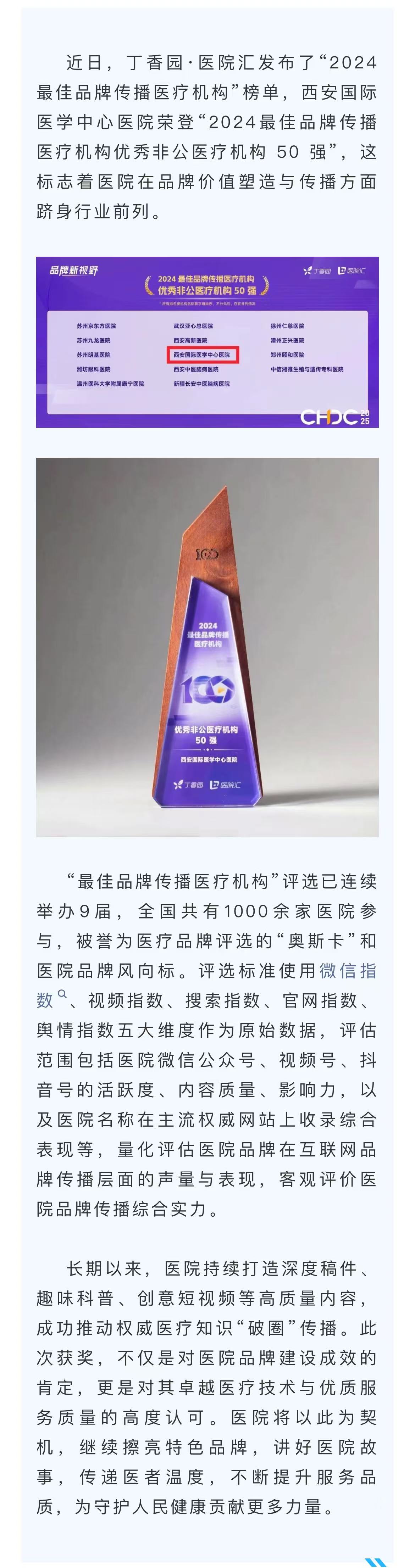 我院榮登“2024最佳品牌傳播醫(yī)療機構(gòu) 50 強”榜單