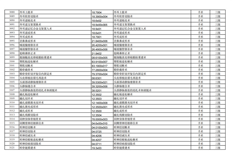 關(guān)于手術(shù)分級(jí)目錄更新的通知